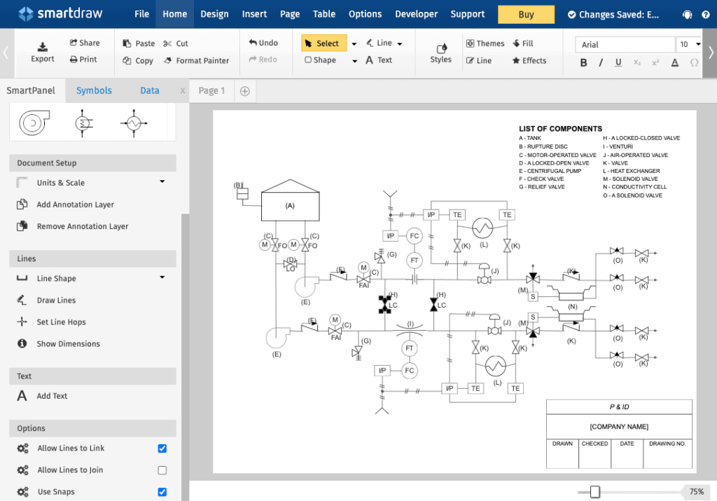 SmartDraw is a fast and easy to use piping and instrumentation design software. The program includes a broad collection of mechanical engineering symbols and industrial templates for piping, instrumentation, HVAC, welding, ducts and more.