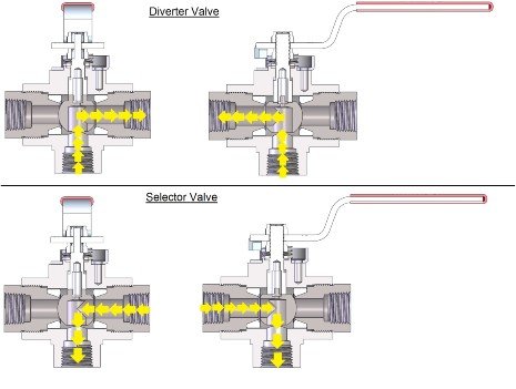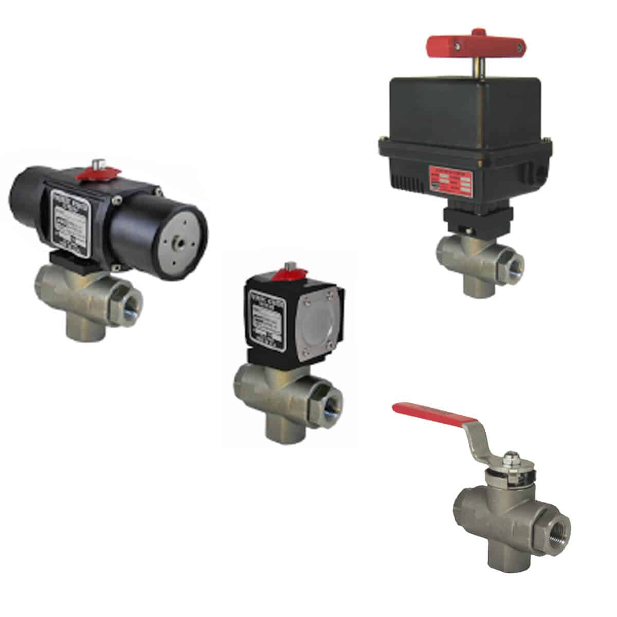 Three-way ball valves can be used as diverters or input selectors. Our 3-way ball valves are designed for use in the following applications: