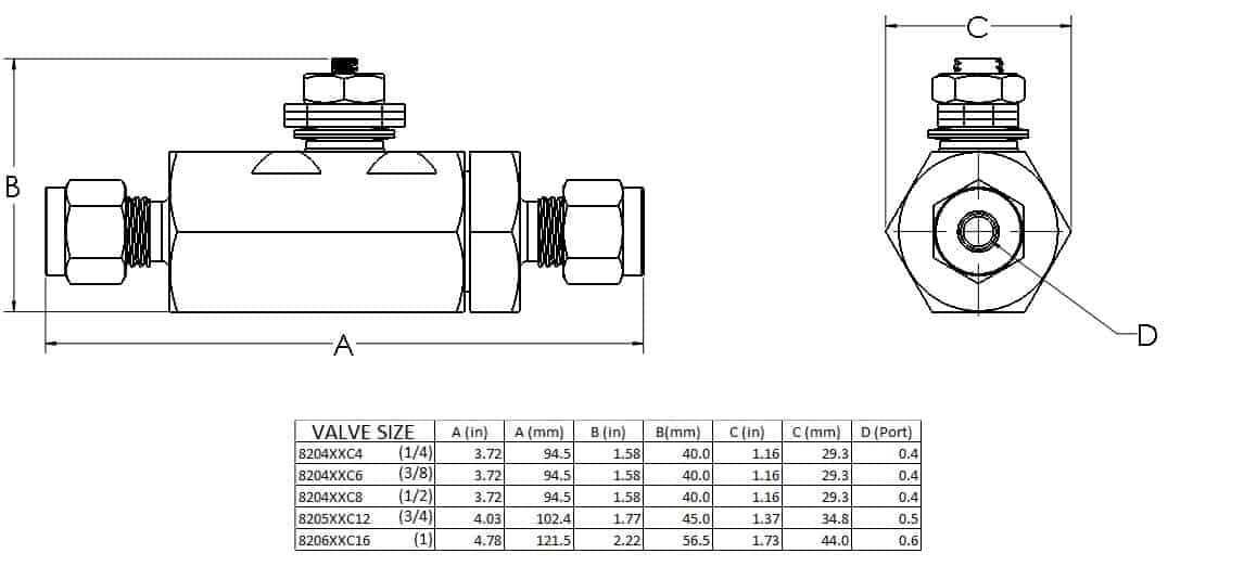 Compression End Series; brass bar stock body with 316 stainless steel ball and stem ball valve. Seats and Stem Seal are glass reinforced P.T.F.E. (Teflon®). Pipe connections are Tube Compression NPT (National Pipe Taper) female screwed end. Temperature Range -50°F to 450°F (-45.5°C to (232.2°C). Valve Body Pressure Rating 1,000 psi C.W.P. (Cold Working Pressure) Maximum Pressure Differential 400 psi – also see Differential Pressure Temperature Chart), Saturated Steam 150 PSI and a vacuum rating of 20 Microns. Self-compensating stem seal design. WARNING: Attention California Product Users: Brass raw materials used to produce this valve contains a small percentage of lead. Cancer or Reproductive Harm. See California Proposition 65 for details at www.P65Warnings.ca.gov Also see Product Specifications which can be found at www.geminivalve.com Products are marketed per Gemini Valve Standard Terms & Conditions. All Gemini Valve Products MADE IN USA.