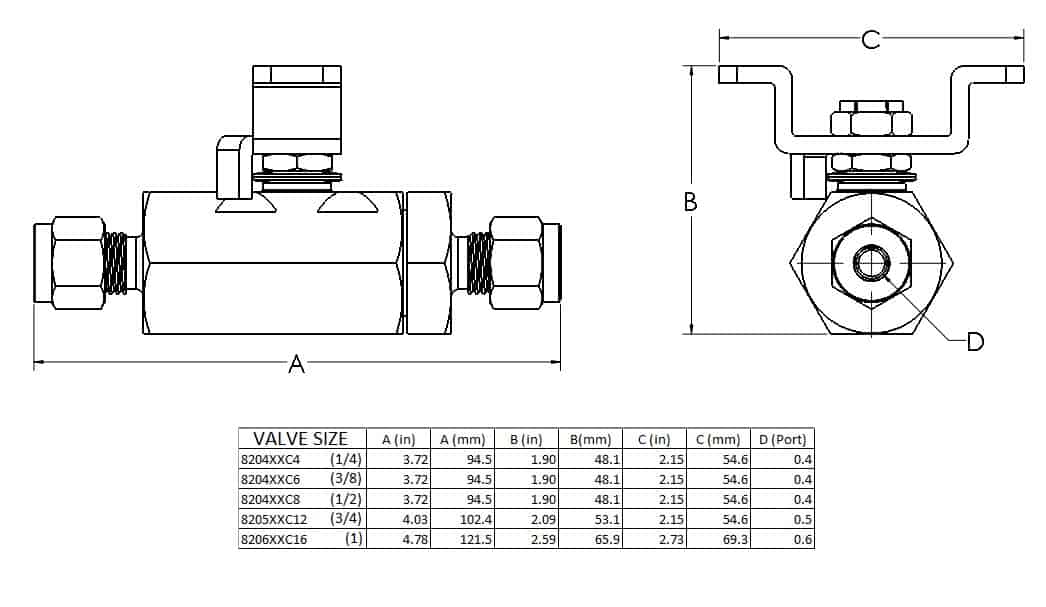 - Valve Connection Size1" Tube Compression