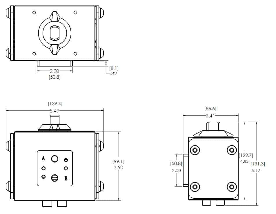 Double-Acting (Air to Open / Air to Close) Pneumatic Actuator which operates on 60-125 psi air supply with an cycle (index) time of 1/2 to 1 second depending on model and load. Temperature Rating -20°F to 350°F (-28.8°C to (176.6°C). Air connection is NAMUR / (2) 1/8” NPT female ports to enable direct NAMUR or remote solenoid valve piloting. Actuator body aluminum with Teflon® impregnated hard anodized surfaces. Hardware 300 Series Stainless Steel. Permanently lubricated – maintenance free. Visual Open / Close indicator. Suitable for 0.36 to 0.80 port General Industrial, Serviceable and Compression End Series Ball Valves Also see Product Specifications which can be found at www.geminivalve.com Products are marketed per Gemini Valve Standard Terms & Conditions. All Gemini Valve Products MADE IN USA.